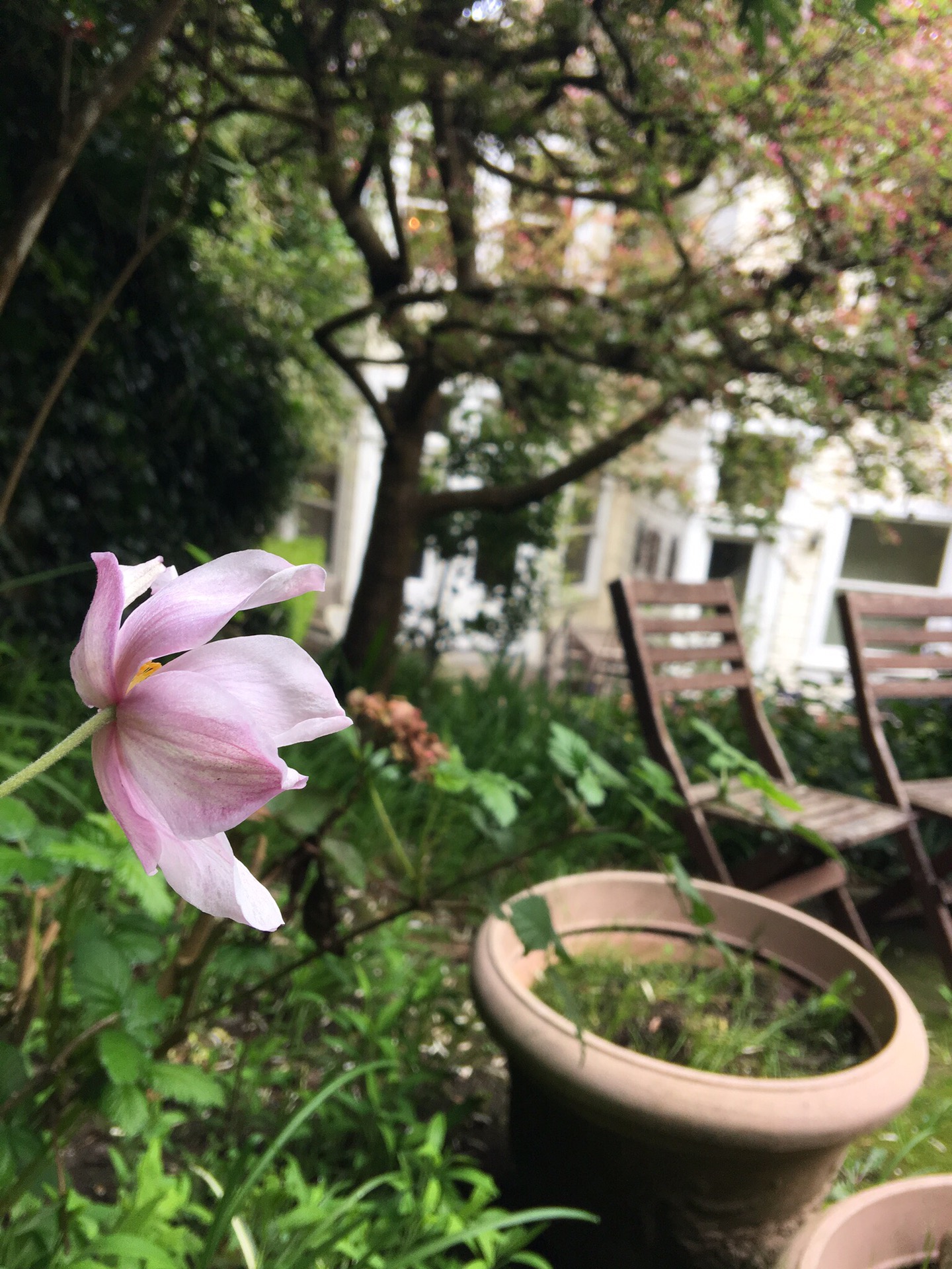 The neighborhood. The third exhale fills the neighborhood. Down alleys and into back gardens.
